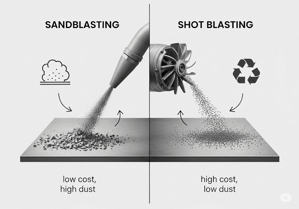 Ít bụi hơn phun cát: Phù hợp với các môi trường yêu cầu độ sạch cao.